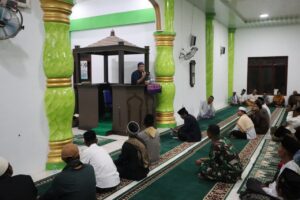 Di sela-sela agenda ibadah bersama, Dandim menyempatkan diri naik ke mimbar untuk memberikan Kuliah Tujuh Menit (Kultum) di hadapan para jamaah.
